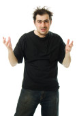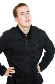 szczęśliwy przystojny uśmiechnięty mężczyzna na białym tle.