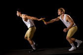 Przekaźnik zawodników przekazywanie pałeczki. łapka na czarno.