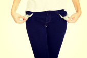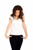 Kobietę nastoletnia biorąc pod uwagę puste kieszenie