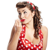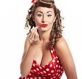 pin-up kobieta stosowania jej makijaż