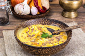 Zupa rybna kremowy z łososia i wodorostów dieta jedzenie.