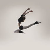 Zdjęcie "The silhouette of young ballet dancer jumping on a lilac background." może być wykorzystywane do celów osobistych i komercyjnych zgodnie z warunkami zakupionej licencji Royalty-free. Obraz jest dostępny do pobrania w jakości wysokiej rozdzielczości do 5760x3840.