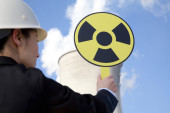 Pracownik z kasków ochronnych i maski w elektrowni