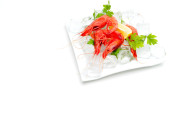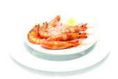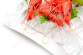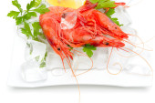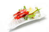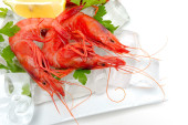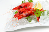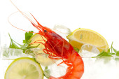 świeże krewetki z cytryną i lodem