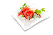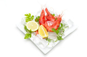 świeże krewetki z cytryną i lodem
