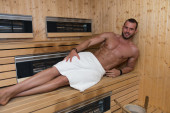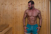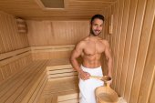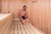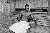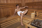 Mężczyzna odpoczynek zrelaksowany w gorącej saunie