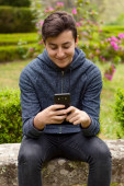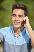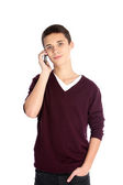 Nastoletni chłopak rozmawia przez telefon komórkowy