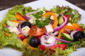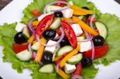 Zdjęcie "Świeżych warzyw sałatka grecka na stole" może być wykorzystywane do celów osobistych i komercyjnych zgodnie z warunkami zakupionej licencji Royalty-free. Obraz jest dostępny do pobrania w jakości wysokiej rozdzielczości do 5760x3840.