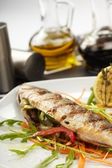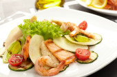 krewetki z łososiem i warzywami