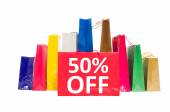 50 off lub pięćdziesiąt procent sprzedaży zniżki dla kobiety buty