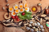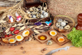 Jaja przepiórcze i smażonymi jajkami przepiórczymi pyszne.