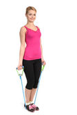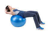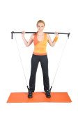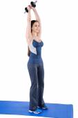 młoda kobieta pokazuje począwszy od pozycji prasy ramię