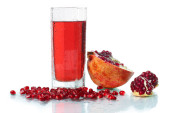 dojrzałe pomergranate i szklanką soku na białym tle