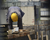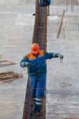 Pracownik budowlany przy użyciu przenośnych uniwersalne maszyny Obcinak do rur