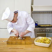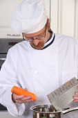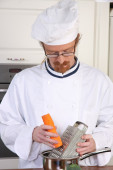 Zdjęcie "młody kucharz przygotowuje obiad w kuchni" może być wykorzystywane do celów osobistych i komercyjnych zgodnie z warunkami zakupionej licencji Royalty-free. Obraz jest dostępny do pobrania w jakości wysokiej rozdzielczości do 5760x3840.