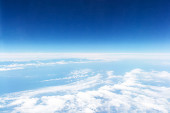 Fantastyczne miękkie białe chmury przeciw błękitne niebo pod chmury deszcz