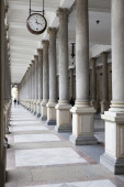 Zdjęcie "Stary zegar i kamienne kolumny w Karlowych Warach" może być wykorzystywane do celów osobistych i komercyjnych zgodnie z warunkami zakupionej licencji Royalty-free. Obraz jest dostępny do pobrania w jakości wysokiej rozdzielczości do 5760x3840.