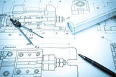 przemysłowych szczegóły planie, kątomierz, Suwmiarka, rozdzielacz i