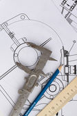 przemysłowych szczegóły planie, kątomierz, Suwmiarka, rozdzielacz i