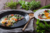 Zdjęcie "Jajka smażone z sałatka i orzechów" może być wykorzystywane do celów osobistych i komercyjnych zgodnie z warunkami zakupionej licencji Royalty-free. Obraz jest dostępny do pobrania w jakości wysokiej rozdzielczości do 5760x3840.