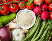 Matowy surowego ryżu i warzyw