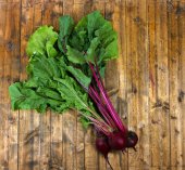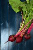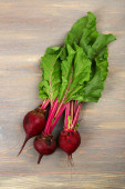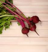 Młode buraki na drewnianym stole