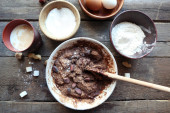 Przygotowanie ciasta czekoladowe ciasto na stole z bliska