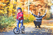 Zdjęcie "Mały chłopiec dziecko i ojca z rowerem w lesie jesienią" może być wykorzystywane do celów osobistych i komercyjnych zgodnie z warunkami zakupionej licencji Royalty-free. Obraz jest dostępny do pobrania w jakości wysokiej rozdzielczości do 5760x3840.
