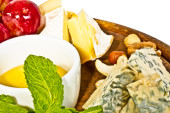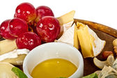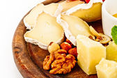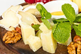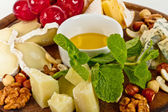 różnych rodzajów sera z miodem, orzechami i winogron na płycie,