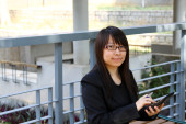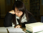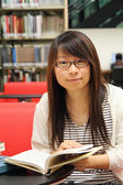 Asian dziewczyna studiuje na Uniwersytecie