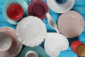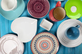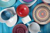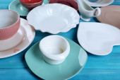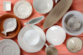 różne naczynia na drewnianym stole