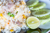 Zdjęcie "smażony ryż z wieprzowiną, tajskie jedzenie" może być wykorzystywane do celów osobistych i komercyjnych zgodnie z warunkami zakupionej licencji Royalty-free. Obraz jest dostępny do pobrania w jakości wysokiej rozdzielczości do 5760x3840.