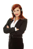 uśmiechnięta obsługa telefonu operatora w słuchawki.