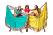 Kobieta tancerz flamenco, pozowanie, biały na białym tle na pełnej długości