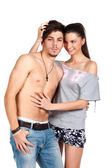 atrakcyjna kobieta mężczyzna uwodzenia i rozbieranie