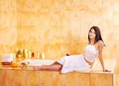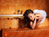 kobieta wziąć kąpiel bąbelkowa.