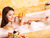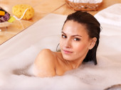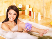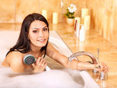 kobieta wziąć kąpiel bąbelkowa.