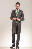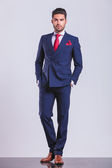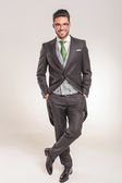 człowiek biznesu pewność pozowanie stałego i dotykając dłoni