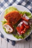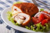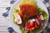 Cięcia cordon bleu kurczaka i sałatka z bliska. poziome