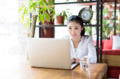 Zdjęcie "uśmiechający się młoda kobieta jest siedzieć w kawiarni" może być wykorzystywane do celów osobistych i komercyjnych zgodnie z warunkami zakupionej licencji Royalty-free. Obraz jest dostępny do pobrania w jakości wysokiej rozdzielczości do 5760x3840.