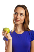 Zdjęcie "Dziewczyna z jabłkiem, patrząc w górę" może być wykorzystywane do celów osobistych i komercyjnych zgodnie z warunkami zakupionej licencji Royalty-free. Obraz jest dostępny do pobrania w jakości wysokiej rozdzielczości do 5760x3840.