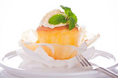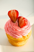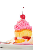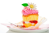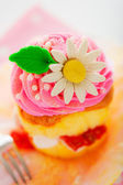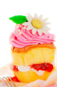 dwie warstwy ciastko z różowy i biały lukier i złota pow