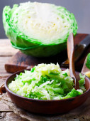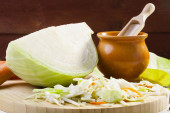 Kapusta kiszona w misce drewniane