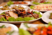 tabela zestaw usług z kieliszki ze srebra i szkła w restauracji przed stroną