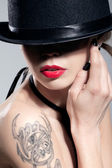 piękna modelka, klasycznym stylu retro spojrzenie studio portra