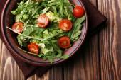 Sałatka z kapusty i pomidorów Savoy serwowane w misce na drewnianym stole