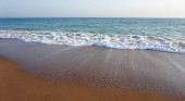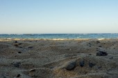 wulkanicznej plaży w kamari na Santorynie siland