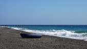 naturalnej czarnej lawy koulombos plaża na wyspie santorini