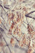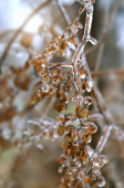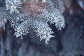 Roślina pokryta mróz, szron lub rym w zimowy poranek