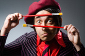 Zdjęcie "Śmieszne artysta z jego kompozycji" może być wykorzystywane do celów osobistych i komercyjnych zgodnie z warunkami zakupionej licencji Royalty-free. Obraz jest dostępny do pobrania w jakości wysokiej rozdzielczości do 5760x3840.